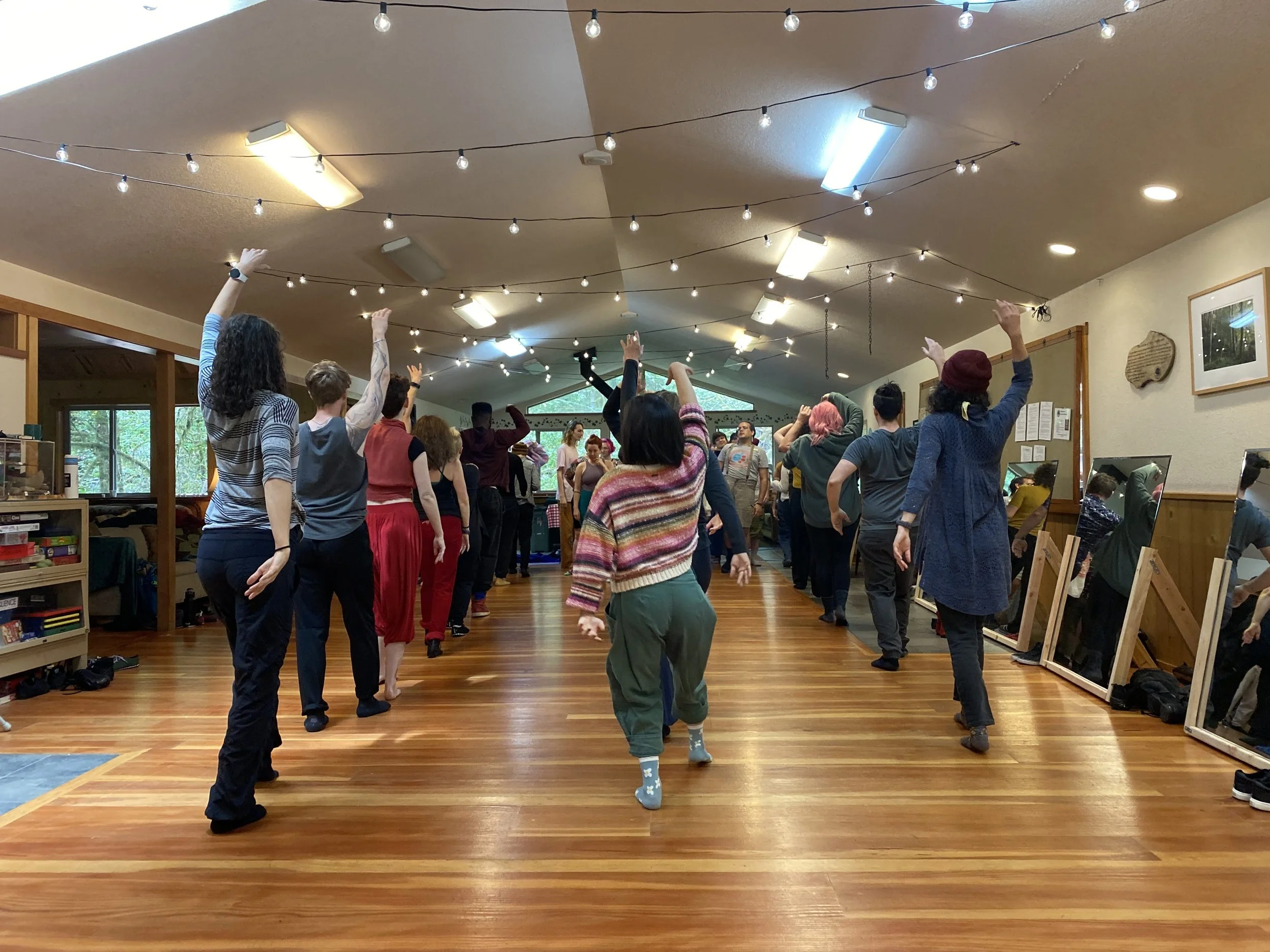 Before diving into a new dance style, instructors offer rich presentations that root the following day's curriculum in cultural and historical context. We gather in our comfiest clothes with snacks and tea to absorb, inquire, and deepen our understanding of each dance's origins and evolution. These intimate sessions create space for direct dialogue with instructors about the cultural foundations that inform our technical training. These evenings offer
